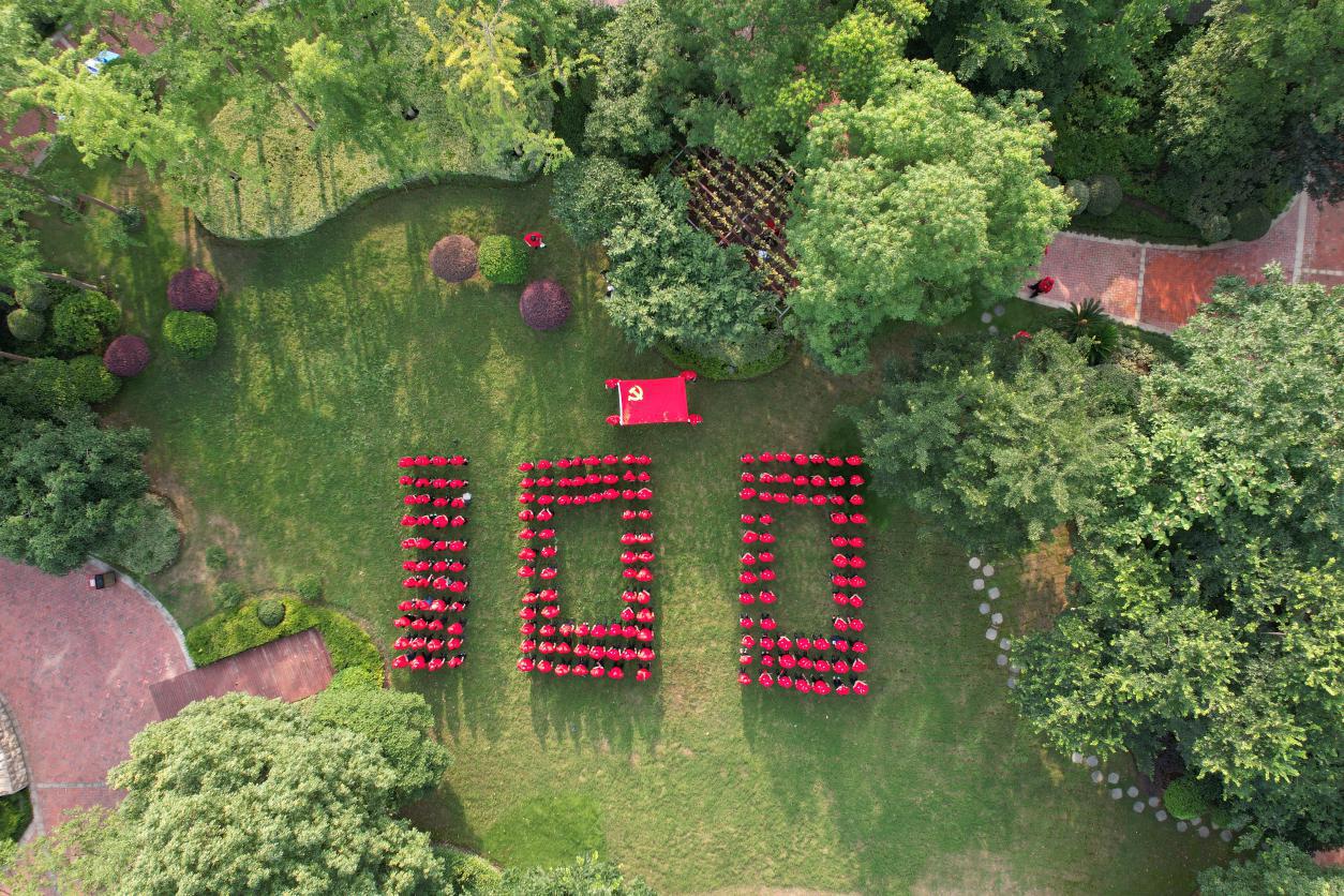 圖:慶祝中國共產(chǎn)黨成立100周年徽標(biāo)隊形