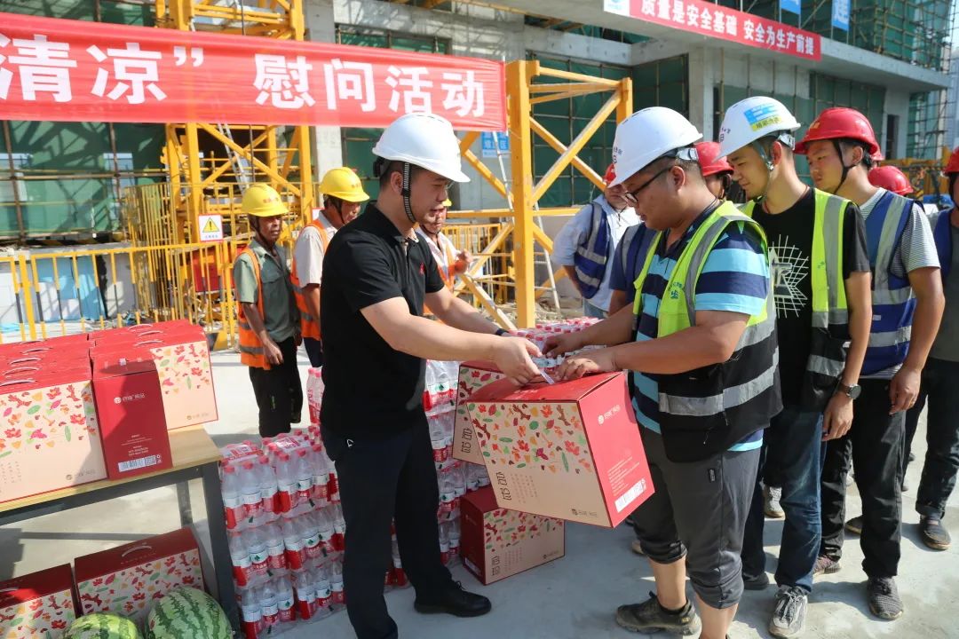 集團(tuán)黨委班子成員分別走訪慰問了清江錦城項(xiàng)目、清能正榮府項(xiàng)目、清能龍湖天曜項(xiàng)目以及荊州學(xué)府花園項(xiàng)目,實(shí)地察看了項(xiàng)目施工現(xiàn)場,詢問了解了項(xiàng)目安全生產(chǎn)、勞動(dòng)保護(hù)及防暑降溫工作情況,積極協(xié)調(diào)解決職工暑期生產(chǎn)生活方面的困難和問題,為項(xiàng)目一線職工送去西瓜、礦泉水、清涼禮包等防暑降溫物品,叮囑他們?cè)谧龊帽韭毠ぷ鞯耐瑫r(shí),注意高溫酷暑下的自我保護(hù),把健康和安全生產(chǎn)放在第一位,以良好的精神狀態(tài)投入到工作中。