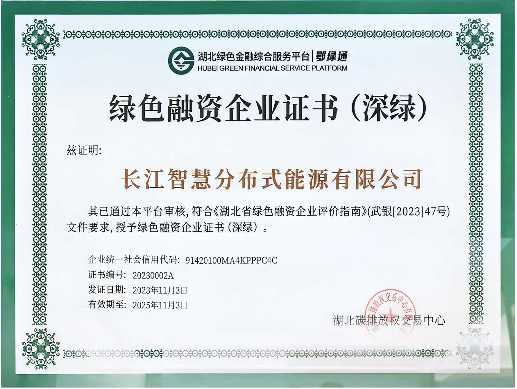綠色融資企業證書